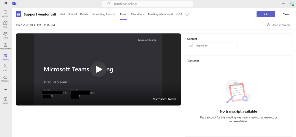 If the remote vendor was invited to the meeting but is not part of the UMSystem Teams organization, they will not have automatic access to the recording. External guests (remote vendors) need to be explicitly granted access.