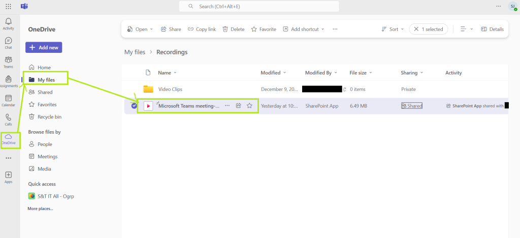 For the host the recording will be accessible in teams SharePoint or OneDrive. You can select My files in OneDrive and Choose Recordings folder where as the host you can view the recordings.