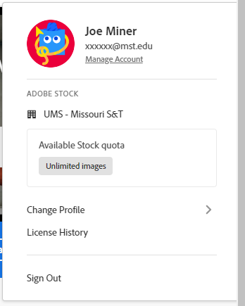This document discusses how to make sure that you are signed in with your Enterprise Profile in Adobe Stock to license images at no cost as part of your Adobe Creative Cloud license.