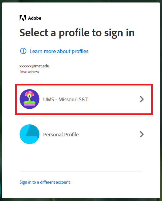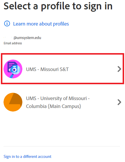 If Adobe does not recognize an account for the email you entered, you can contact the IT Help Desk or submit a request online to have your license verified and have your account migrated to your @umsystem.edu SSO.